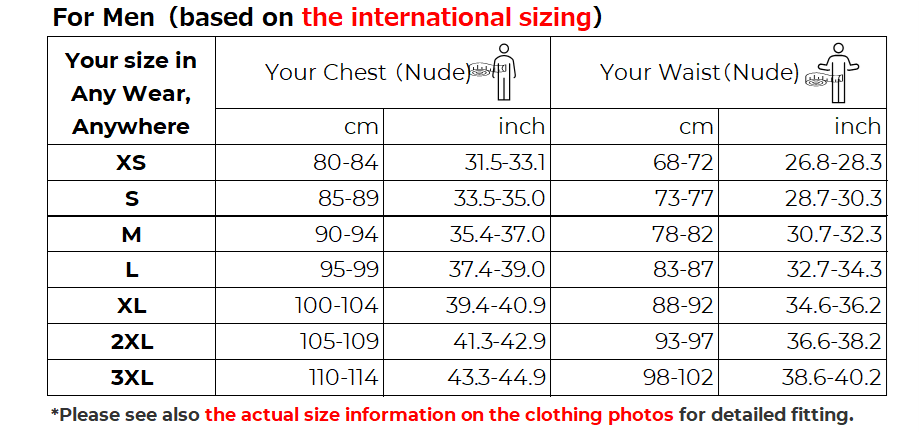 Don't see your size or not sure which to choose? Please send us a message and we'll be happy to work with you to choose the right clothing.