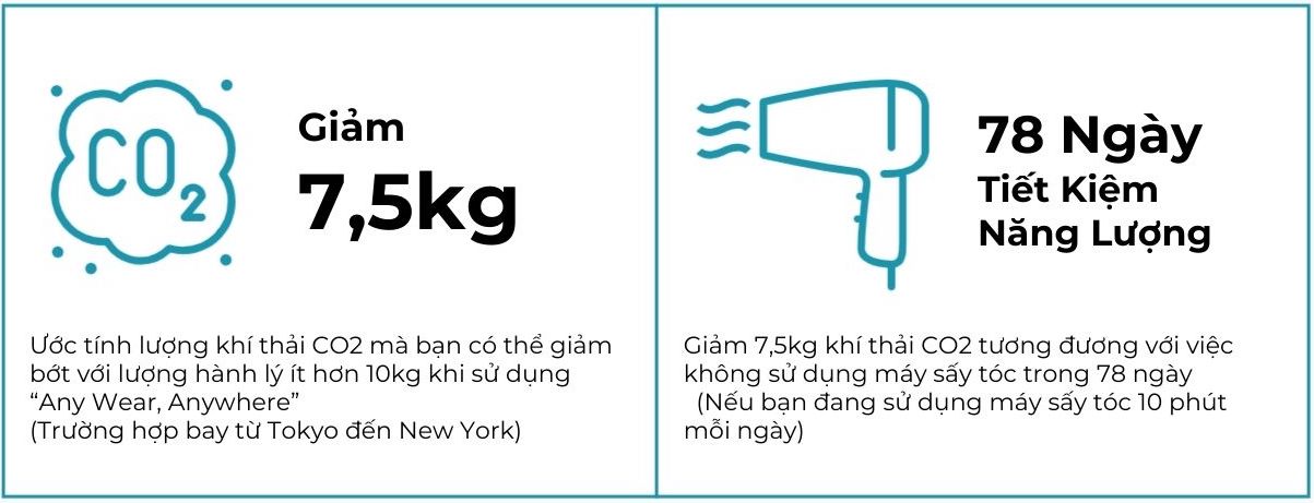 Any Wear, Anywhere can reduce fuel and CO2 emissions from airplanes by reducing the amount of cargo carried. In addition, our service can extend the life of clothes by renting out clothes originally destined for disposal.