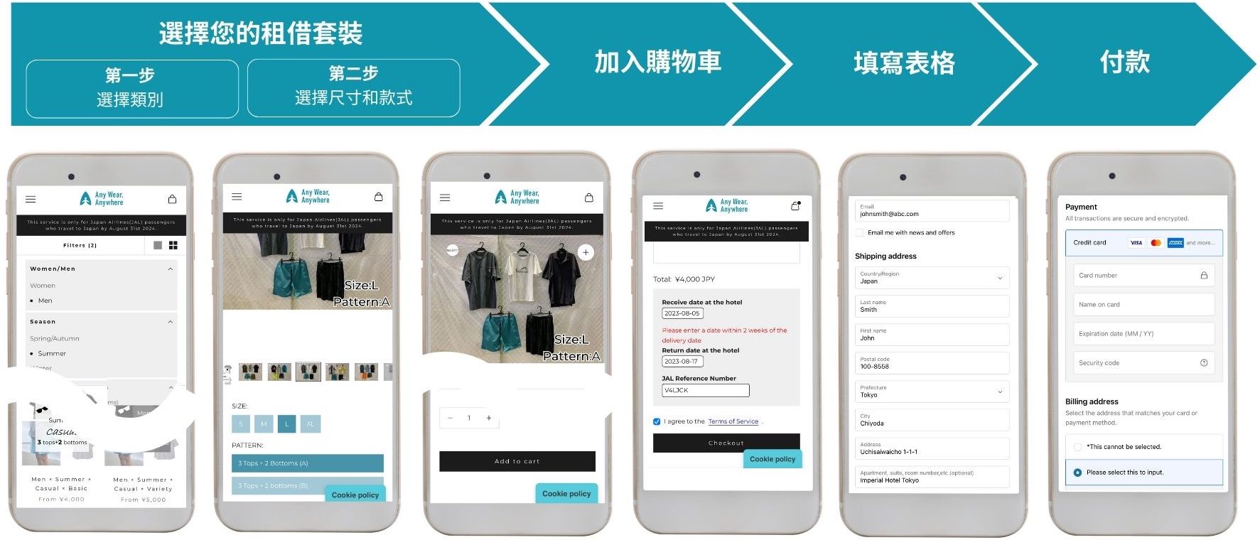 Any Wear, Anywhere is a clothing rental service for people who will travel to Japan . Our service eliminates the need to pack, bring, or wash your own clothes. Through our service, you can also reduce your carbon footprint.